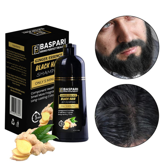 Baspari VIP Ginger Black Hair Dye Shampoo Turn your white & grey hair in Just 5 mints & long lasting Result (Black) (500 ML) شامبو صبغ الشعر الأسود بالزنجبيل