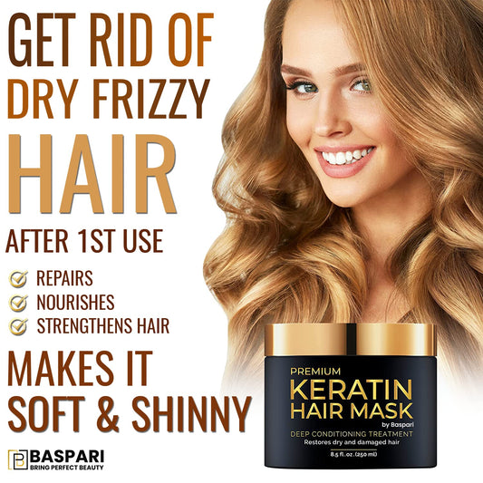 Baspari Keratin Hair Mask -Premium Keratin Hair Mask - Professional Treatment For Hair Repair, Nourishment & Beauty - With Omega 3, 9, Vitamin E - Protein Nourishment Mask