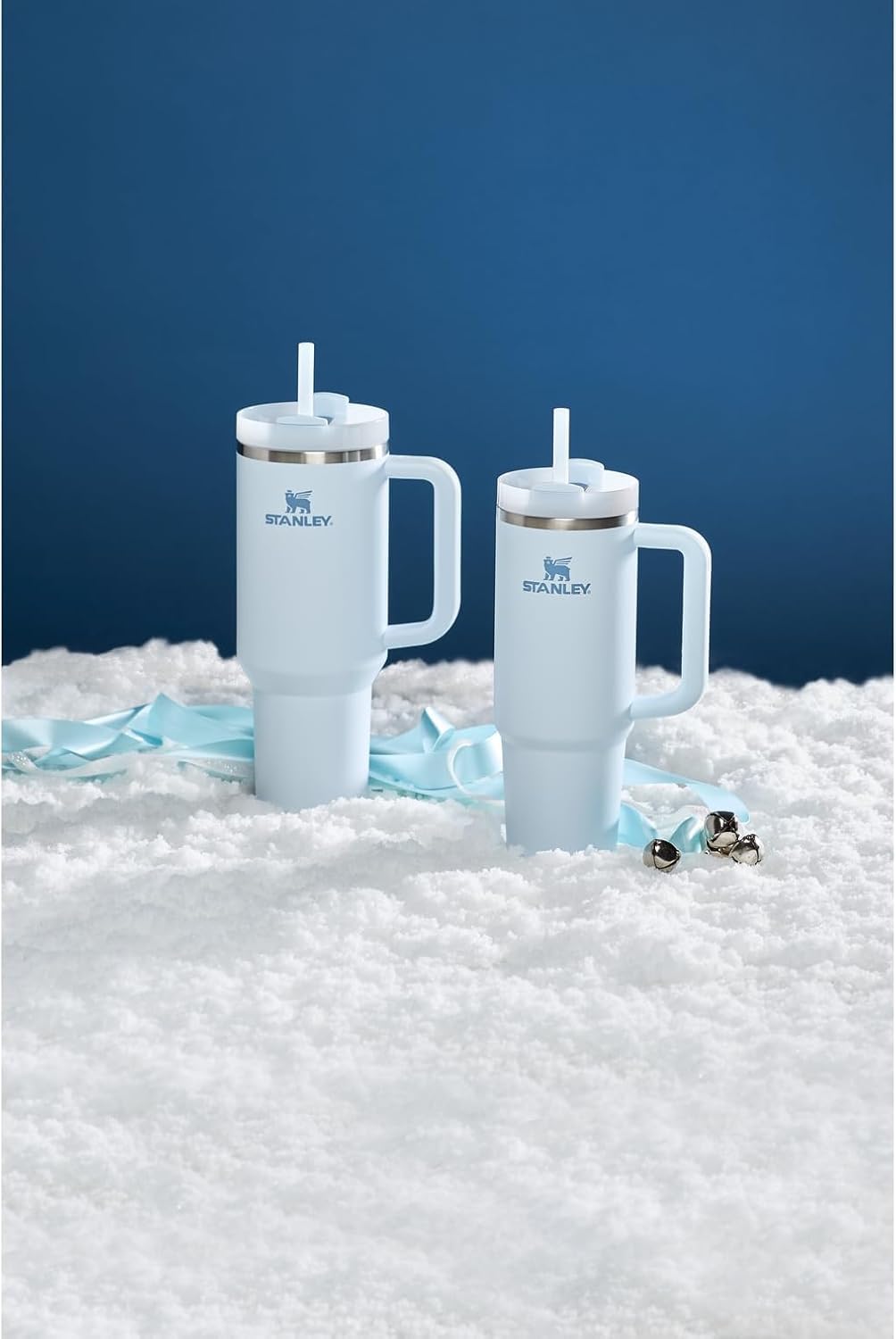 Constructed of recycled stainless steel for sustainable sipping, our 40 oz Quencher H2.0 offers maximum hydration with fewer refills. Commuting, studio workouts, day trips or your front porch—you’ll want this tumbler by your side. Thanks to Stanley’s vacuum insulation, your water will stay ice-cold, hour after hour. The advanced FlowState™ lid features a rotating cover with three positions: a straw opening designed to resist splashes while holding the reusable straw in place, a drink opening, and a full-cover top. The ergonomic handle includes comfort-grip inserts for easy carrying, and the narrow base fits just about any car cup holder.